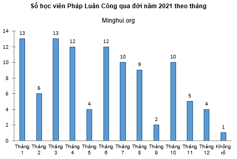 27 học viên Pháp Luân Công đã qua đời từ tháng 1 đến tháng 3 năm 2021