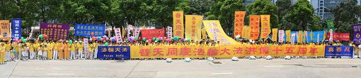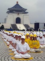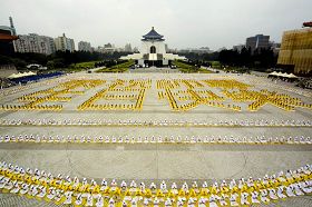 Các học viên ở Đài Loan xếp chữ chào mừng ngày Đại Pháp thế giới