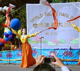 Học viên Đại Pháp tại New York múa chào mừng ngày Đại Pháp thế giới