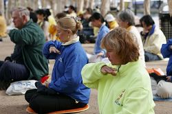Các học viên Pháp Luân Công trình bày các bài công Pháp