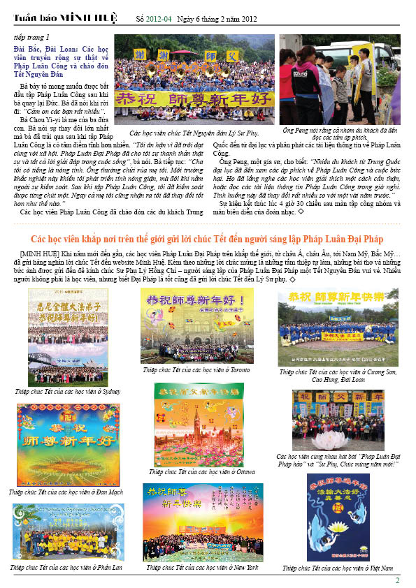 - Các học viên khắp nơi trên thế giới gửi lời chúc Tết đến người sáng lập Pháp Luân Đại Pháp