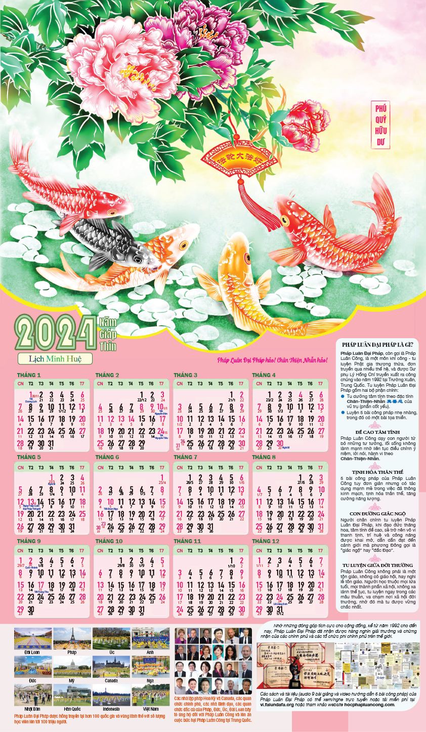 Ghi chú: Đây là hai phiên bản lịch quyển và lịch tờ chính thức và duy nhất của Minh Huệ Việt Ngữ năm 2024 (Tham chiếu từ phiên bản dành cho Đại Lục). Vui lòng không tự ý chỉnh sửa dưới mọi hình thức. Xin cảm ơn mọi ý kiến đóng góp của quý độc giả!