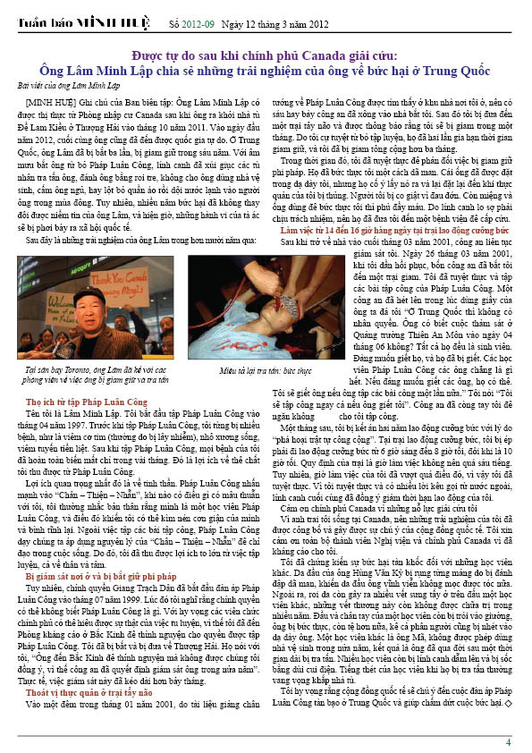 - Được tự do sau khi chính phủ Canada giải cứu: Ông Lâm Minh Lập chia sẻ những trải nghiệm của ông về bức hại ở Trung Quốc