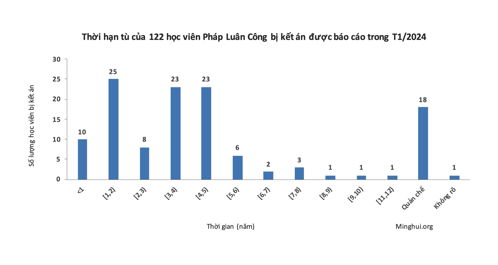 [MINH HUỆ 07-02-2024] Tháng 1 năm 2024 ghi nhận tổng cộng 122 trường hợp công dân Trung Quốc tuân thủ luật pháp bị chính quyền kết án vì kiên định đức tin.