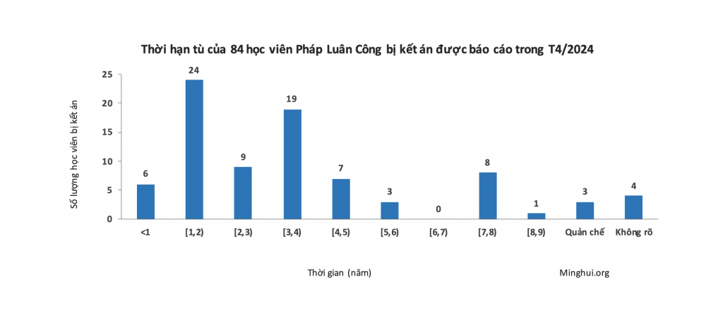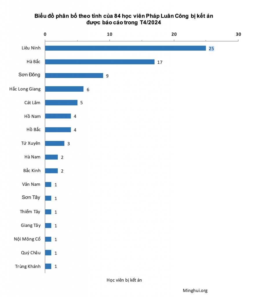 [MINH HUỆ 11-05-2024] Tháng 4 năm 2024 ghi nhận tổng cộng 84 học viên Pháp Luân Công bị kết án vì kiên định đức tin.