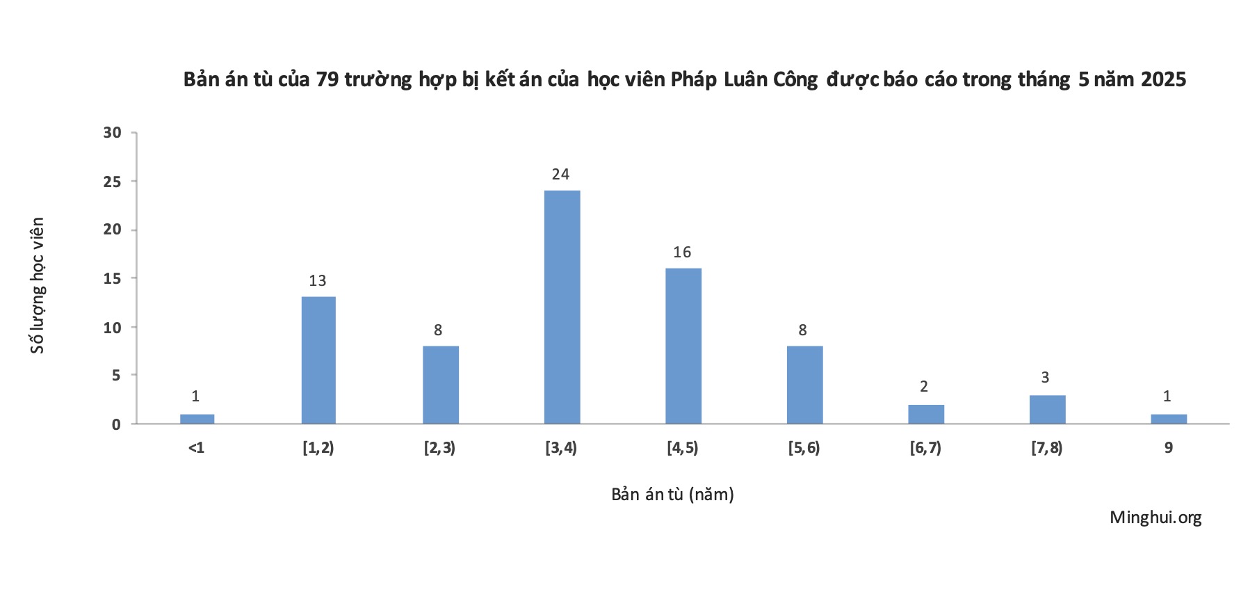 [MINH HUỆ 04-06-2025] Tháng 5 năm 2025 ghi nhận thêm 79 trường hợp học viên Pháp Luân Công bị kết án tù vì kiên định đức tin.