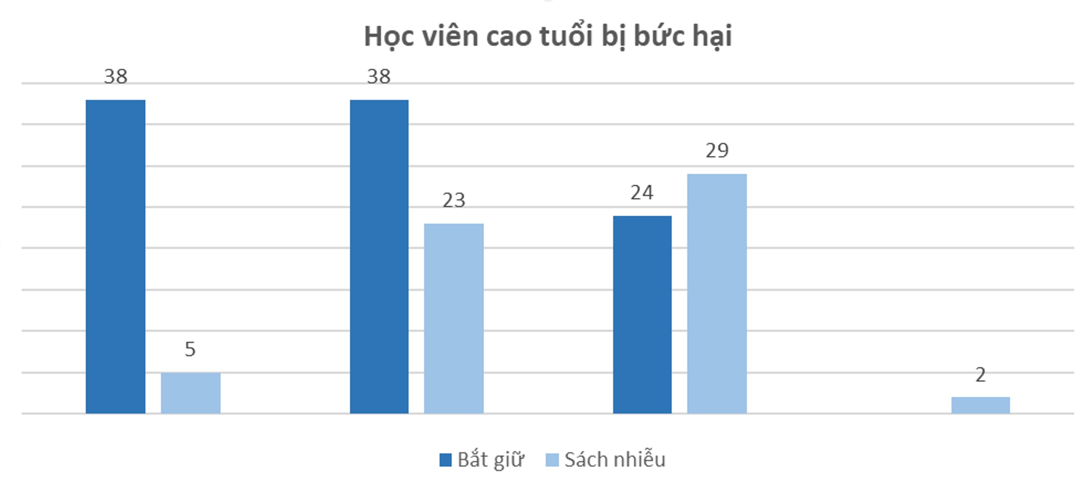 Ít nhất 159 học viên đã ngoài 60 tuổi tại thời điểm bị bắt giữ hoặc sách nhiễu, trong đó có 43 người ở độ tuổi 60, 61 người ở độ tuổi 70, 53 người ở độ tuổi 80, và 2 người ở độ tuổi 90. Người cao tuổi nhất là một cụ ông 92 tuổi ở thành phố Kê Tây, tỉnh Hắc Long Giang, bị sách nhiễu cùng cụ bà 86 tuổi của mình.