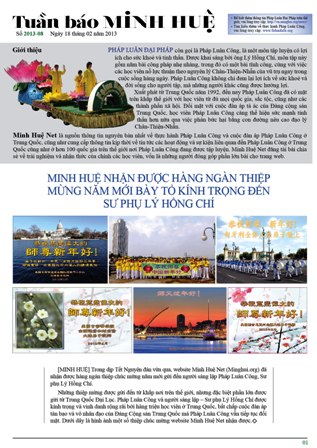 [MINH HUỆ 20-2-2013]Tuần báo Minh Huệ tổng hợp tin tức hàng tuần về cuộc đàn áp ở Trung Quốc và các sự kiện của học viên Pháp Luân Công trên khắp thế giới, với dạng thức là bản in màu định dạng PDF, gồm 4 trang. Bản PDF này định dạng khổ A4 tiện dụng cho việc in ấn phổ thông.