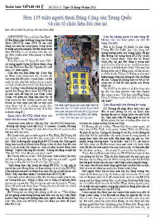- Hơn 135 triệu người thoái Đảng Cộng sản Trung Quốc và các tổ chức liên đới của nó