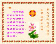– Các đệ tử Pháp Luân Đại Pháp tại Yongyang, tỉnh Hồ Nam kính chúc Sư phụ nhân ngày sinh nhật, và mừng ngày Pháp Luân Đại Pháp toàn thế giới