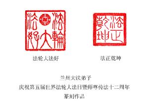 – Triện “Pháp Luân Đại Pháp Hảo” và “Pháp Chính Càn Khôn”, đệ tử Đại Pháp tại Lan Châu: