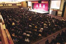 [Minh Huệ] Ngày 11-4-2004, hơn 4000 học viên Pháp Luân Đại Pháp, tề tựu tại Manhattan, New York và nghiêm trang tham dự Pháp hội giao lưu tâm đắc thể hội. Vào khoảng 11:30 sáng, đức Sư tôn đã đến và giảng Pháp trong khoảng 30 phút.