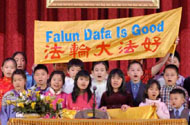 Các tiểu đệ tử từ trường Minh Huệ đã đến ngâm các bài trong tập thơ “Hồng Ngâm”. Sau đó trương biểu ngữ viết “Pháp Luân Đại Pháp Hảo” và đọc dòng chữ ấy bằng năm thứ tiếng.