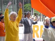 1. Quảng trường Liên Bang, ngày 26 tháng 5 năm 2004, đệ tử Đại Pháp biểu diển công pháp và giải thích việc tố tụng: