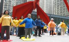 2.Quảng trường Liên Bang (Federal Plaza), ngày 24-26 tháng 5 năm 2004, đệ tử Đại Pháp đã dùng đồ sân khấu đễ biểu diễn những dụng cụ cụ thể mà kẻ theo Jiang đã đang dùng để tra khảo để tử Đại Pháp. Đó chỉ là một số ví dụ nhỏ mà họ đã dùng đễ bức hại đệ tử Đại Pháp ở Trung Quốc: