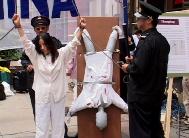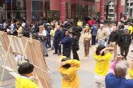 [Minh Huệ] Ngày 25-5-2004, các học viên đã biểu diễn mô phỏng lại những thủ đoạn tra tấn mà bè đảng họ Giang đang cưỡng chế lên các học viên Pháp Luân Công tại Trung Quốc với mục đích bắt họ ly khai Pháp Luân Công. Thực ra những màn trình diễn này —cả về số lượng và mức độ ghê gớm— còn thua xa những gì đang thực sự diễn ra tại nhà tù, trại giam và trại lao động ở Trung Quốc, bởi vì không cách nào diễn đạt nổi sự khủng khiếp ấy.