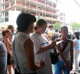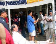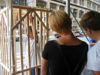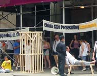 [Minh Huệ] Phóng viên của Minh Huệ Su Jing báo cáo rằng từ đầu tháng 8 năm nay, các đệ tử Pháp Luân Công đã từ nhiều nơi đến Nữu Ước, cùng với các đệ tử địa phương tổ chức hàng loạt những cuộc triển lãm, giảng rõ sự thật trên các đường phố đông đúc tại Manhattan. Tại một vài địa điểm, các đệ tử đã tổ chức các hoạt cảnh chống tra tấn mà đã thu hút được sự chú ý của rất nhiều người. Những cuộc hoạt cảnh này phô bày sự dã man của chính sách khủng bố Pháp Luân Công của Giang và đám hầu đoàn đối với các đệ tử Pháp Luân Công tại Trung quốc.