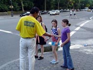 Có một người đi đường biết được sự thật khuyên rằng chúng tôi nên đi Manhattan vì ở đó nhiều người hơn và họ có quyền hành và thế lực. Anh ta nói “Tôi đang nghĩ cách làm thế nào để tìm thêm người giúp cho các bạn”. Chúng tôi cám ơn anh ta và nói “Chúng tôi không theo đuổi một mục tiêu chính trị nào, và chúng tôi chỉ hy vọng rằng những người như anh sẽ biết được Pháp Luân Đại Pháp Hảo và chính sách khủng bố là sai và cần phải chấm dứt. Từ phương diện này, anh cũng quan trọng như những người có nhiều quyền lực kia”. Anh ta không ngờ lời trả lời của chúng tôi như vậy và thật sự cảm động không nói được. Sau đó anh ta chúc chúng tôi may mắn và đi khỏi.
