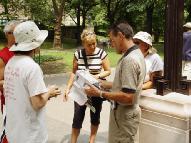 Anh ta rất cảm động và yêu cầu chúng tôi nhiều lần rằng chúng tôi có muốn trở lại ngày mai và anh ta nói là sẽ cho chúng tôi mỗi người một tấm vé để vào cửa. Vì chúng tôi không họp ý ngay lúc đó, chúng tôi không trả lời dứt khoát với anh ta được. Chúng tôi thấy anh ta rất thật lòng và thật sự thất vọng khi anh ta nghe chúng tôi trả lời như thế. Rất nhiều đệ tử Đại Pháp đã để lại những ký ức rất đẹp cho người khác trong cuộc hành trình giảng rõ sự thật. Rất nhiều khi họ đến những danh lam thắng cảnh nhưng không bao giờ nghĩ đến chuyện thưởng thức riêng tư của họ, vì họ biết rằng nhiều người đang chờ đợi để nghe sự thật về Đại Pháp, và họ biết các đệ tử tại Trung quốc cũng đang làm việc tương tự như vậy nhưng với một hoàn cảnh cực kỳ nguy hiểm hơn.