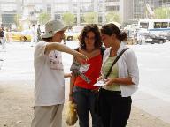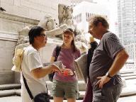 Có hai nhân viên làm việc tại viện bảo tàng nhận tài liệu của chúng tôi và đọc. Một người nói “Bạn không cần cho tôi tài liệu, nhưng giải thích nó cho tôi? Tôi muốn nghe bạn nói”. Chúng tôi nói chuyện với anh ta rất lâu về những mầu nhiệm của Pháp Luân Đại Pháp và chính sách khủng bố tàn bạo. Chúng tôi cũng nói với anh ta rằng chúng tôi dùng tiền tiết kiệm của mình và bỏ ra ngày cuối tuần để đi Nữu Ước mục đích là để nói với mọi người “Pháp Luân Đại Pháp Hảo”. Chính sách khủng bố phải được chấm dứt.”