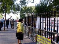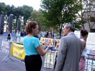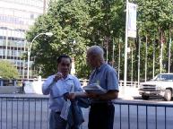 [Minh Huệ] Ngày 23 tháng 9 năm 2004 là ngày thứ tư trong chương trình một tuần thỉnh nguyện trước trụ sở Liên Hiệp Quốc. Cũng là ngày thứ tư mà các đệ tử khắp nơi trên thế giới thỉnh nguyện chấm dứt chính sách khủng bố Pháp Luân Công tại Trung quốc. Các đoàn xe của các nhà lãnh đạo và phóng viên báo chí, tivi qua lại tấp nập. Các đệ tử biểu diễn Công Pháp, triển lãm chống tra tấn và lao động nô lệ là thu hút được nhiều sự chú ý của các đại diện Liên Hiệp Quốc. Một số đông cũng nhận lấy tài liệu giảng rõ sự thật từ các đệ tử.